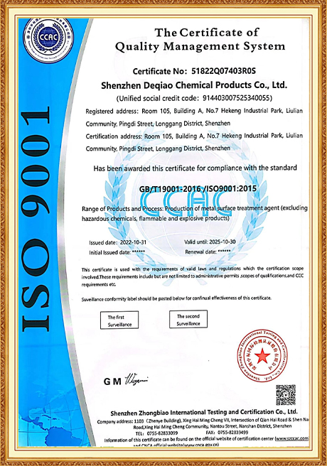 Founded in the 1990s, Shenzhen Deqiao Chemical Products Co., Ltd. (hereafter "Deqiao Chemical") is a high-tech enterprise focused on the R&D, production, and marketing of fine chemicals—with core expertise in metal surface treatment chemicals and water treatment chemicals. To tackle industry pain points, the company combines collaborative R&D with domestic universities and independent research efforts, specifically addressing complex surface treatment challenges associated with magnesium alloy and aluminum alloy products in the market.